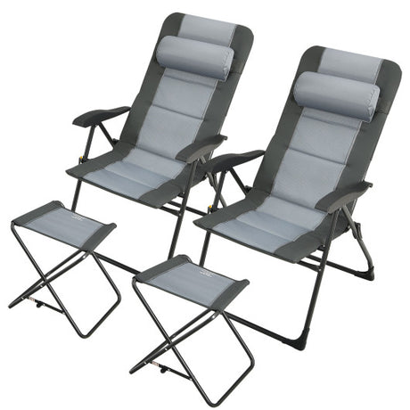Set of 2 Patiojoy Patio Folding Dining Chair with Ottoman Set Recliner Adjustable-Gray
