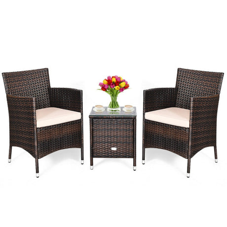3 Pcs Outdoor Rattan Wicker Furniture Set-Beige