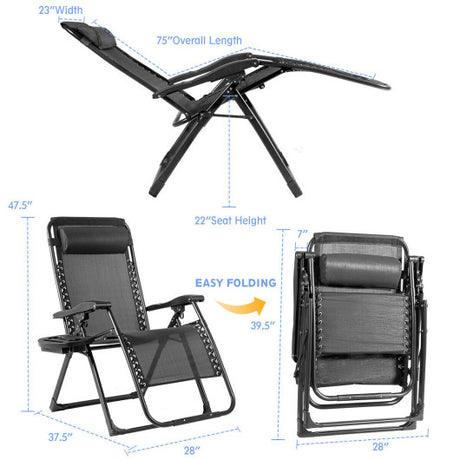 2 Pieces Folding Lounge Chair with Zero Gravity-Navy
