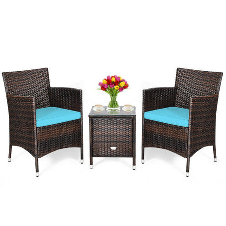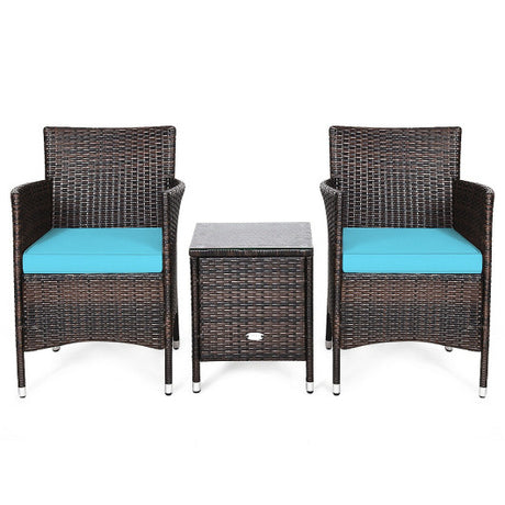 3 Pcs Outdoor Rattan Wicker Furniture Set-Blue