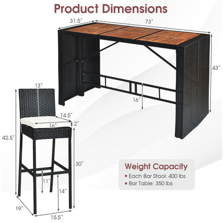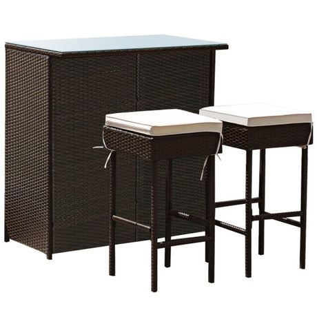 3-piece Rattan Wicker Bar Table Stools Dining Set Cushioned Chairs