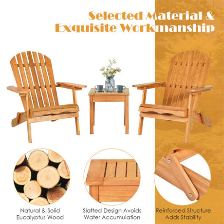 3 Pieces Adirondack Chair Set with Widened Armrest