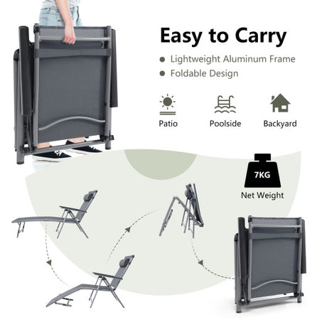 Outdoor Adjustable Chaise Lounge Chair with Lay Flat Position and Quick-Drying Fabric