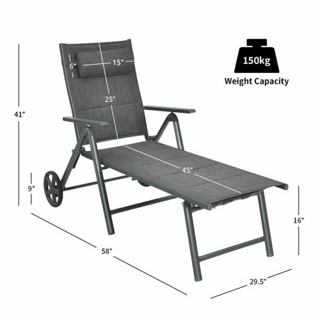Adjustable Patio Folding Chaise Lounge Chair with Wheels