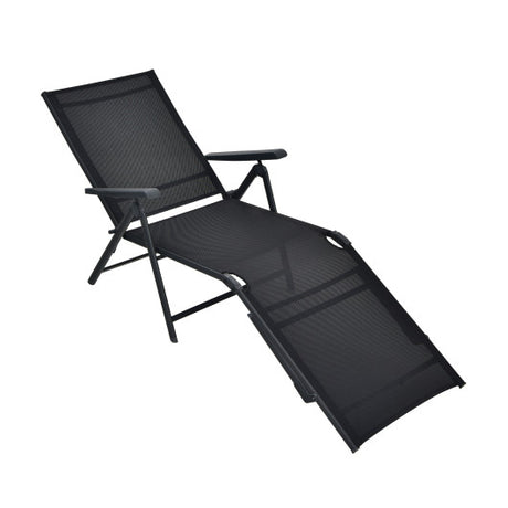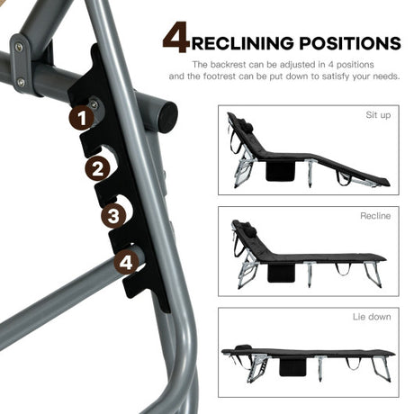 4 Position Folding Lounge Chaise with Adjustable Backrest and Footrest-Black