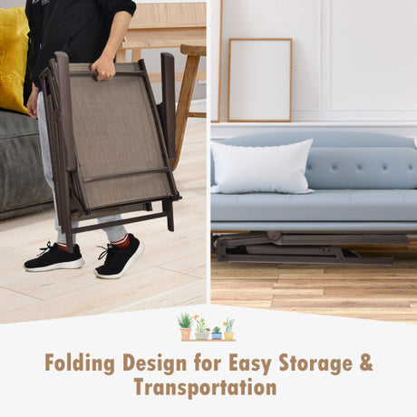 2 Pieces Foldable Chaise Lounge Chair with 2-Position Footrest-Brown