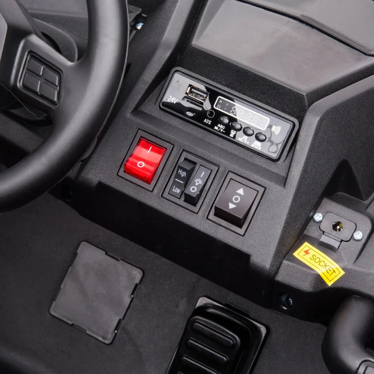 - Thanks to its leather seats, this Ride on Car is comfort on wheels, perfect for intense days of adventures. Its bold design and comfort make this car unique.