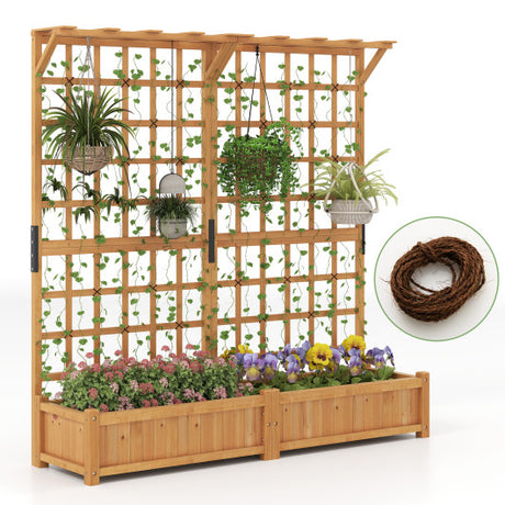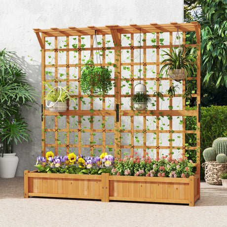 Raised Garden Bed with Lattice Trellis and Drainage Holes Elevated-Natural