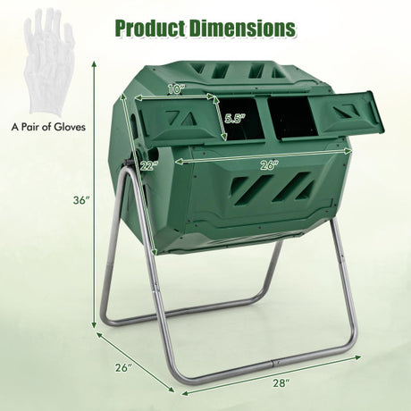 43 Gallon Rotating Compost Bin Barrel with Dual Chamber and Sliding Doors-Green