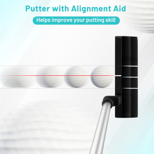 Putter with Alignment Aid: The mallet putter helps improve your putting skill. This putter is designed for precision featuring alignment lines for better aim a sturdy steel shaft for durability and anti-slip handgrips for a more stable consistent putt.