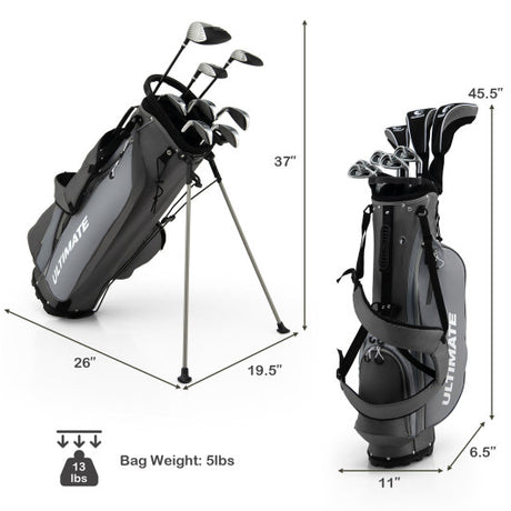 10 Pieces Men's Complete Golf Clubs Package Set with Alloy Driver