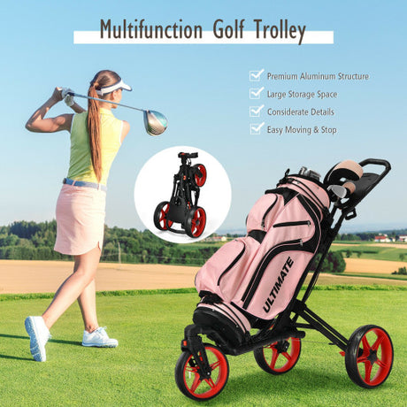 3 Wheels Folding Golf Push Cart with Seat Scoreboard and Adjustable Handle-Red