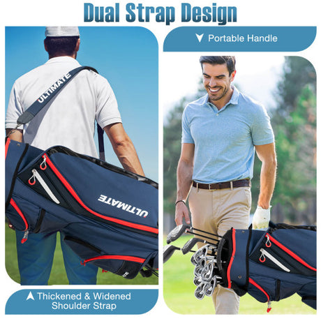14 Dividers Golf Cart Bag with 7 Zippered Pocket