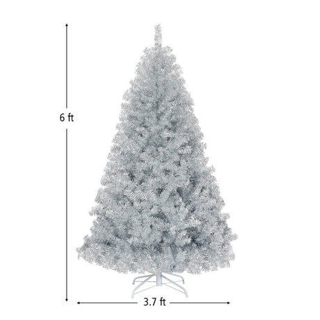 6 Feet Hinged Unlit Artificial Silver Tinsel Christmas Tree with Metal Stand