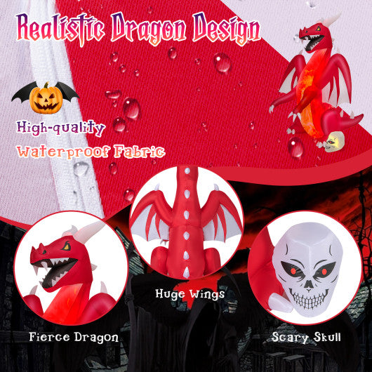 8 Feet Halloween Inflatables Blow-up Red Dragon with Wings Skull