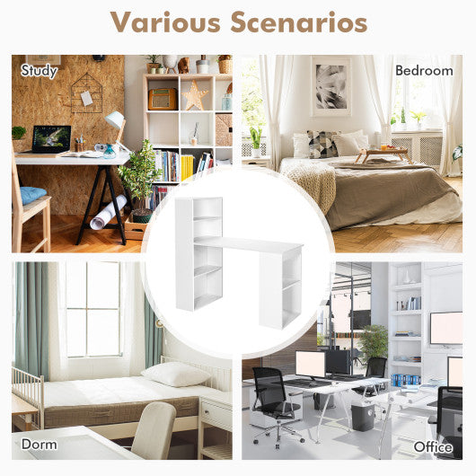 With a large desktop a 2-tier shelf and 4 cubby shelves this compact computer desk keeps all of your office supplies in great order. Durable engineered construction with thickened MDF board ensure years of reliable use. What's more the stylish and modern appearance makes it suitable for office home gaming room as an office desk study desk and e-sports desk. It can be used as a right shelf desk or a left shelf desk as per your preference. Organize your messy office supplies for increased work efficiency with this 3 in 1 computer desk!