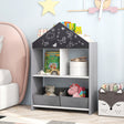 Playhouse Kids Bookshelf with Chalkboard and Whiteboard for 3-6 Years-Gray