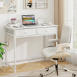 Space Saving Home Office Desk with 2 Fabric Drawers and 4 Hanging Hooks-White