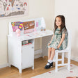 Wooden Kids Study Desk and Chair Set with Storage Cabinet and Bulletin Board-White