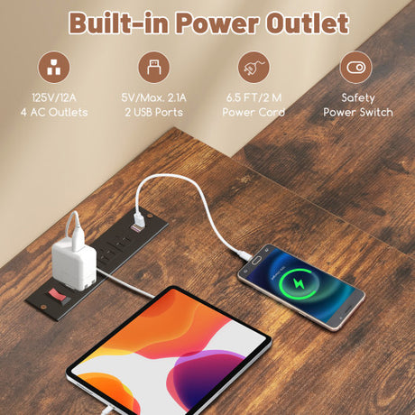 2-Person Computer Desk with Power Outlet and Printer Stand-Rustic Brown