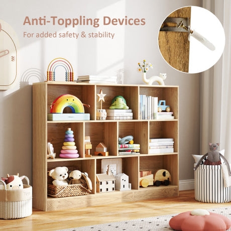 3-Tier Children's Multi-Functional Bookcase Toy Storage Bin Floor Cabinet-Natural