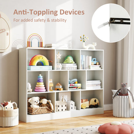 41 inches Wooden Toy Storage Organizer with 10 Cubes for Kids-White