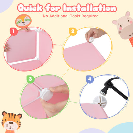 8-Cube Kids Wardrobe Closet with Clothes Hanging Section and Doors-Pink