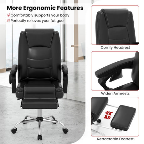 Massage Adjustable Executive Chair with Armrests and Retractable Footrest-Black