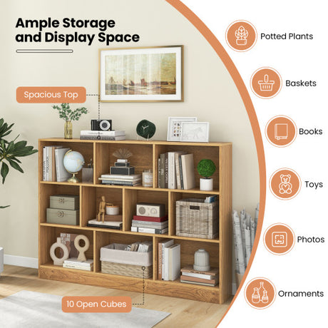 41 inches Wooden Toy Storage Organizer with 10 Cubes for Kids-Natural