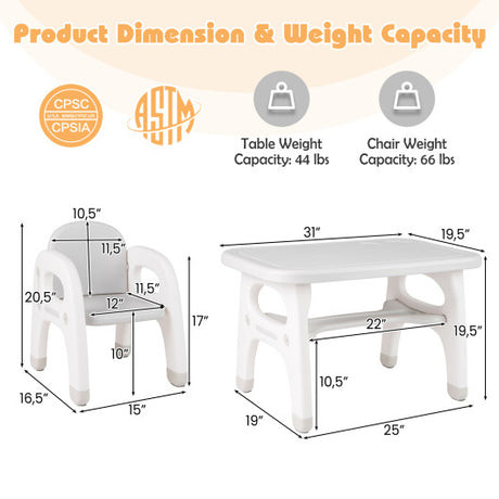 Kids Wooden Picnic Table Set Toddler Activity and Dining Table with Built-in Benches