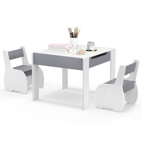 4-in-1 Wooden Activity Kids Table and Chairs with Storage and Detachable Blackboard-Gray
