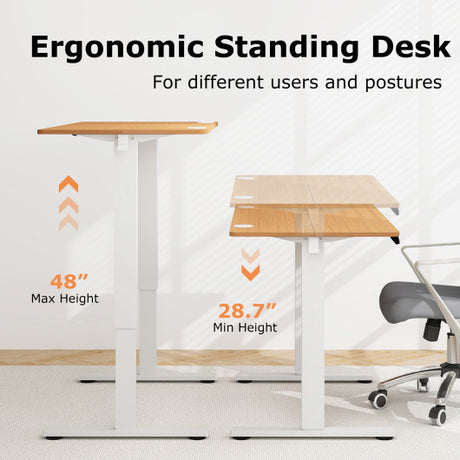 Electric Standing Desk with 3 Memory Height Settings and 2 Hanging Hooks & Cable Management-Natural