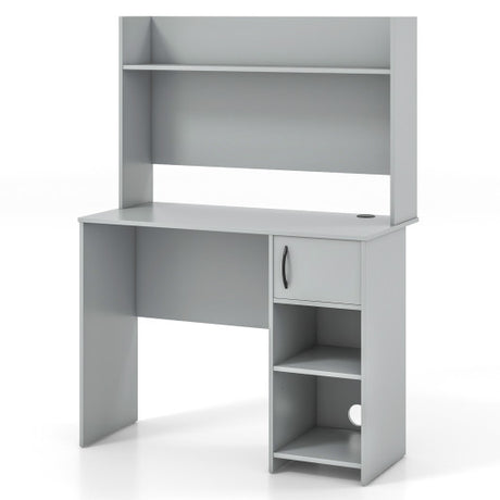 Home Office Desk with Raised Display Shelf and 2 Open Shelves-Gray