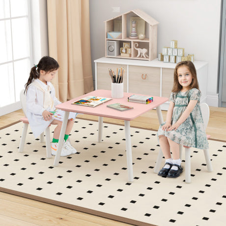 3 Pieces Kids Table and Chairs Set for Arts Crafts Snack Time-Pink