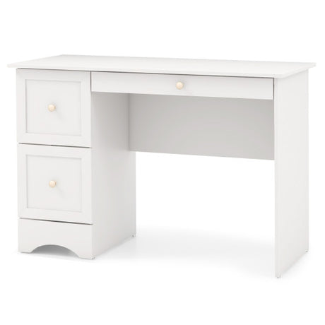 Wooden Computer Desk Workstation with 3 Drawers for Home and Office-White