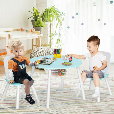Kids Table and 2 Chairs Set with Storage Shelf and Building Blocks-Blue