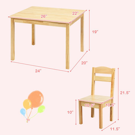 5 pcs Kids Pine Wood Table Chair Set-Natural