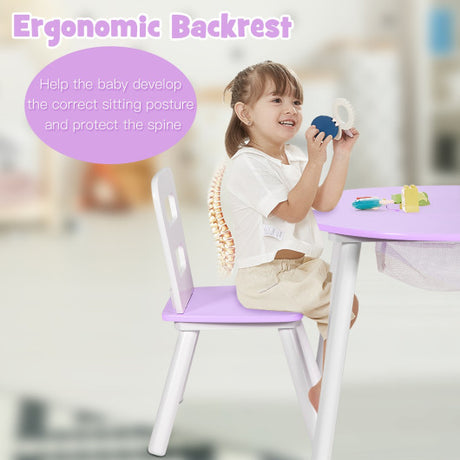 Wood Activity Kids Table and Chair Set with Center Mesh Storage for Snack Time and Homework-Purple