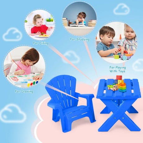 3 Pieces Toddler Multi Activity Play Dining Study Kids Table and Chair Set-Blue