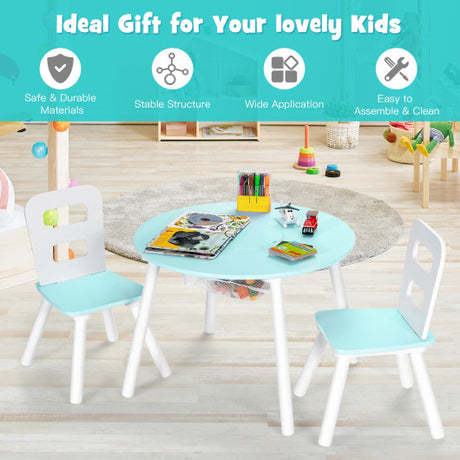 Kids Table and 2 Chairs Set with Storage Shelf-White