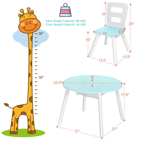 Wood Activity Kids Table and Chair Set with Storage Space-Gray