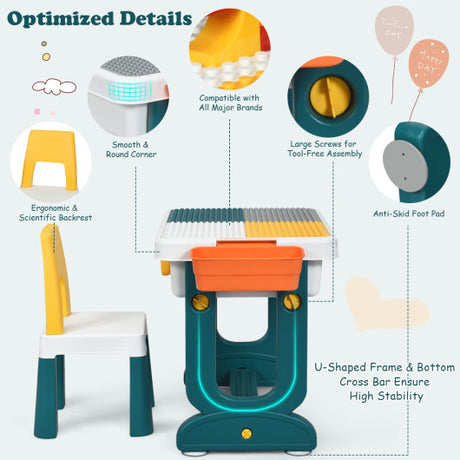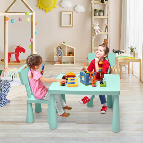 3 Pieces Toddler Multi Activity Play Dining Study Kids Table and Chair Set-Green