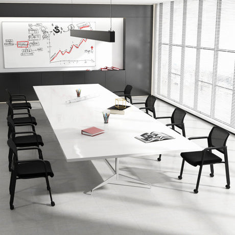 Set of 2 Stackable Rolling Office Chairs with Mesh Backrest-Black