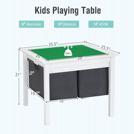 2-in-1 Kids Double-sided Activity Building Block Table with Drawers-White