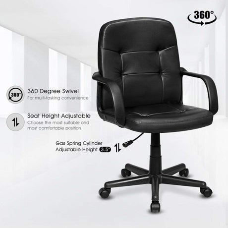 1 Piece Modern Adjustable Swivel Round PU Leather Chair-Black