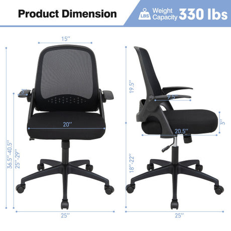 Adjustable Mesh Office Chair Rolling Computer Desk Chair with Flip-up Armrest-Black