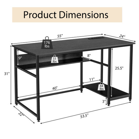 55 Inch Computer Desk with Power Outlets and USB Ports for Home and Office-Black