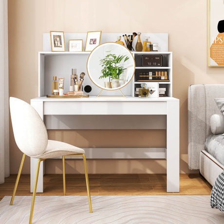 Computer Desk Home Office with Bookshelf and Drawers-White