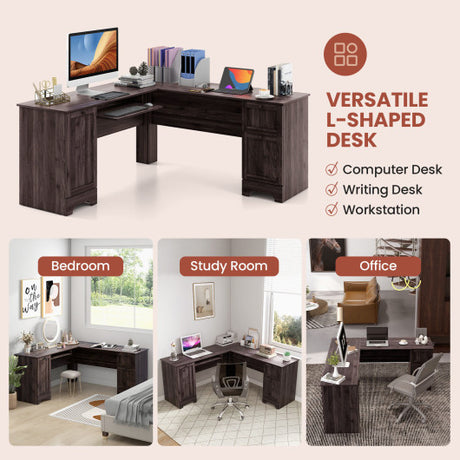 L-Shaped Office Desk with Storage Drawers and Keyboard Tray-Dark Brown