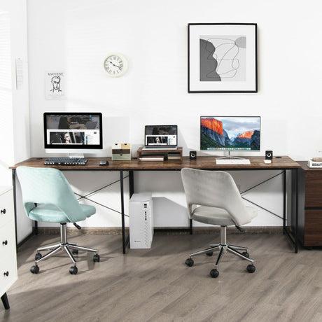 95 Inch 2-Person L-Shaped Long Reversible Computer Desk with Monitor Stand-Rustic Brown